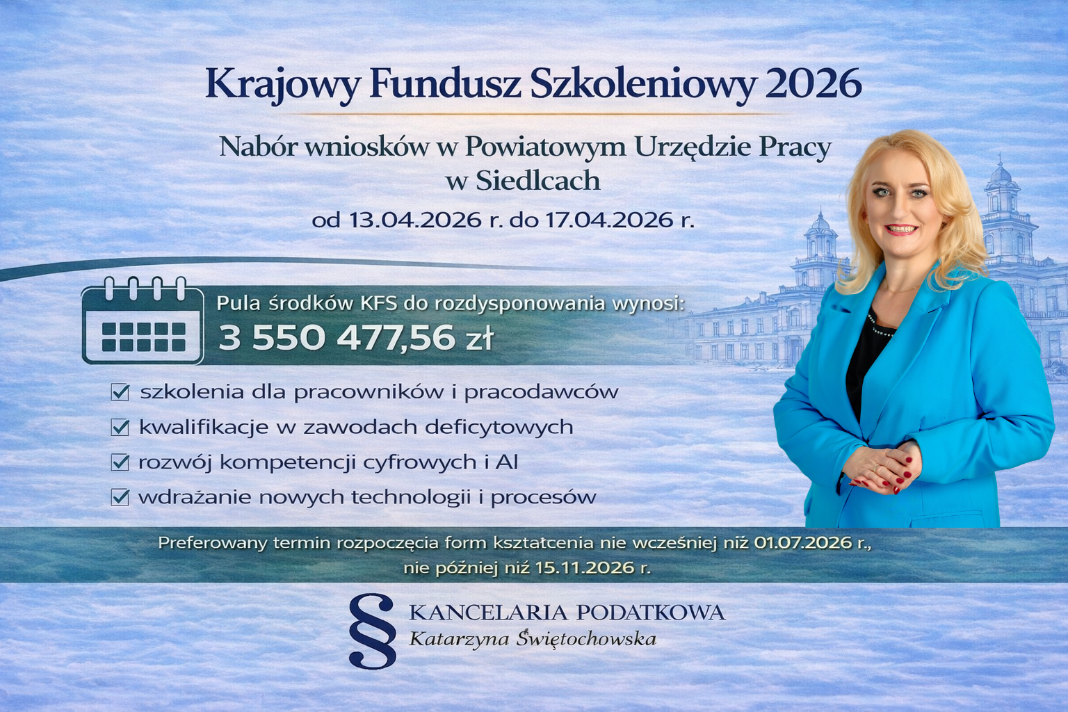 Informuję, iż Powiatowy Urząd Pracy w Siedlcach ogłasza nabór wniosków o przyznanie środków z Krajowego Funduszu Szkoleniowego (KFS) na finansowanie kształcenia ustawicznego.