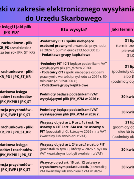 Elektroniczne księgi podatkowe – kto i od kiedy musi je prowadzić? Obowiązki w zakresie elektronicznego wysyłania ksiąg do Urzędu Skarbowego Od 1 stycznia 2026 r. wchodzi kolejny etap cyfryzacji rozliczeń z fiskusem, który obejmie zarówno duże spółki, jak i jednoosobowe działalnoś...