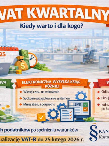 VAT kwartalny – kiedy warto i dla kogo? Przejście na VAT kwartalny to dla wielu małych firm realna ulga – nie tylko organizacyjna, ale przede wszystkim finansowa. To rozwiązanie, które pozwala jednocześnie lepiej zarządzać gotówką i zyskać czas na przygotowanie się do nowych obow...