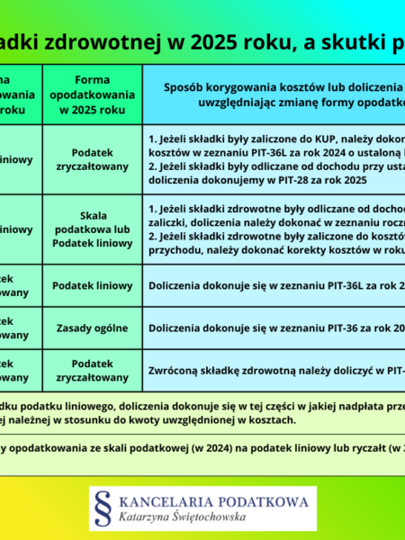 Zwrot składki zdrowotnej otrzymanej w 2025 roku, a skutki podatkowe W 2025 roku część przedsiębiorców otrzymała zwrot nadpłaconej składki zdrowotnej za 2024 rok. Przypominam, że jeśli składka była wcześniej rozliczana, zwrot ten może powodować konieczność korekty kosztów albo z...