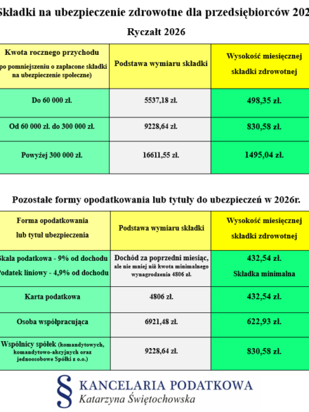 Wysokość składki zdrowotnej na 2026 rok dla przedsiębiorców rozliczających się na ryczałcie i nie tylko Wiemy już, ile wyniesie składka zdrowotna w 2026 roku dla firm rozliczających się na ryczałcie oraz na innych formach opodatkowania.GUS podał wysokość przeciętnego miesięcznego...