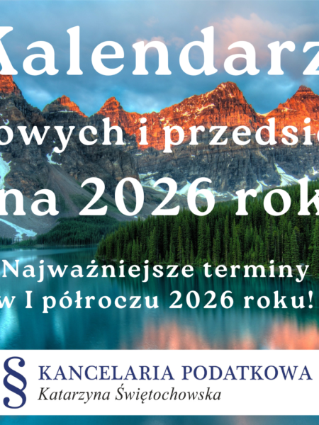 KALENDARZ PODATKOWY NA 2026 rok – najważniejsze terminy w I półroczu 2026 roku Poniżej przedstawiam Wam najważniejsze terminy dla księgowych i dla przedsiębiorców w I półroczu 2026 roku - mam nadzieję, że Wam się to przyda :) Do 20 Stycznia 2026 Zapłata zaliczki na podatek dochodo...
