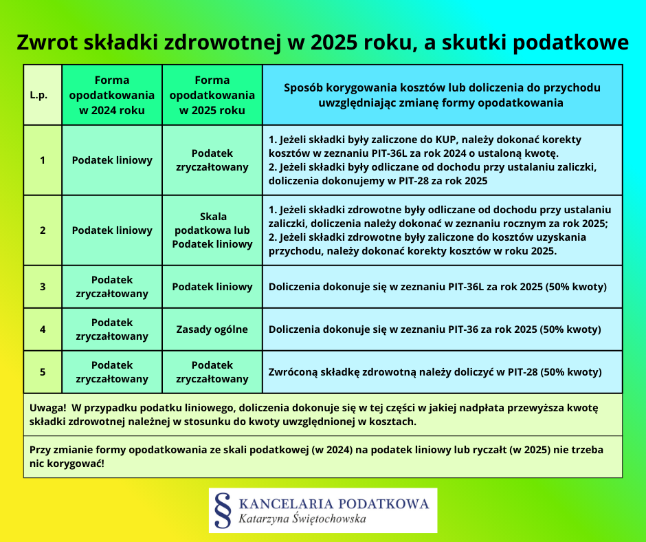 Zwrot składki zdrowotnej otrzymanej w 2025 roku, a skutki podatkowe